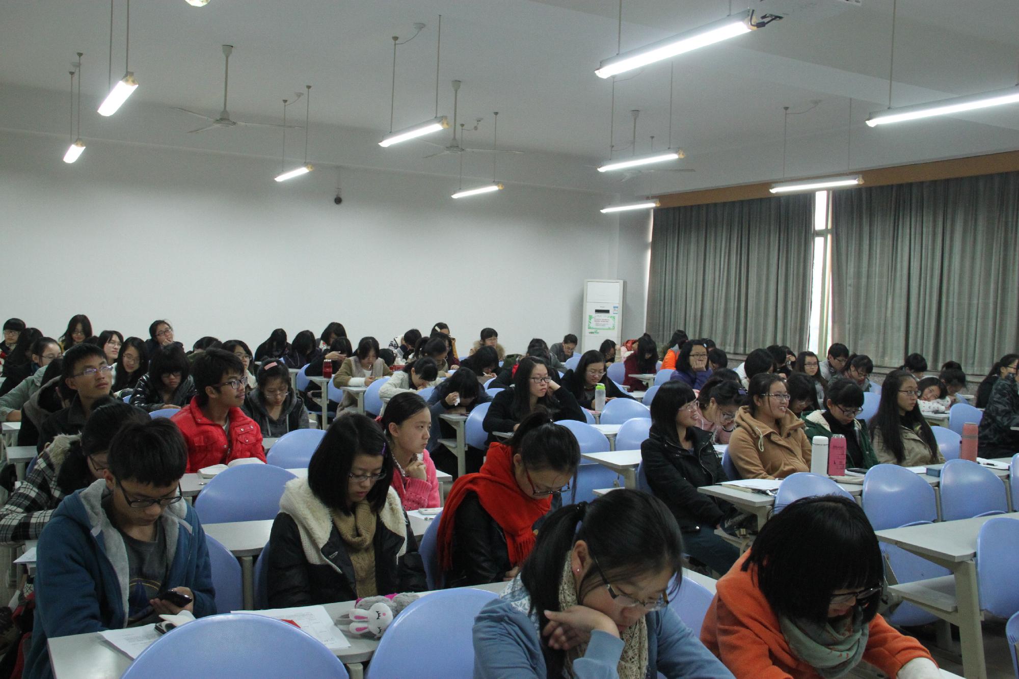 紧接着,江欢强调了要多参与社会实践,多找兼职,社会很残酷,每个人只有充分深入社会、了解社会才能够适应社会的需求。作为兼职而言,赚钱是次要的,重要的是从中获得经验。而谈到参加学生会各种活动,江欢认为最重要的是责任感,既然选择了这项工作,就必须尽自己最大的努力去完成,不能半途而废。他认为在大学的学习中最重要的是一个“定”字,现在的大学充满着浮躁的气息,大多数人很难定下心来学习,所以心“定”就显得极为重要。